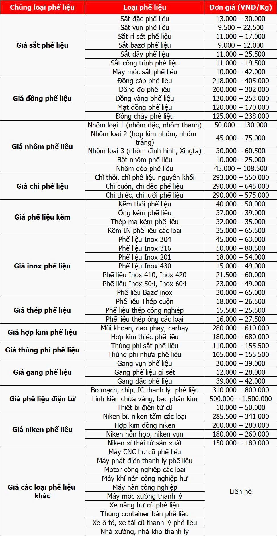 Lưu ý: Giá phế liệu biến động liên tục, để nhận được bảng giá chính xác nhất. Gọi ngay Huy Phát: 0966.496.999